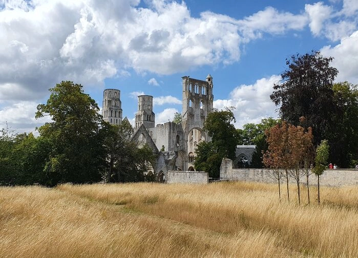 Rouenista matkamme jatkuu kohti länttä ja rannikkoa. Matkan varrella pysähdymme ihailemaan "Ranskan kauneinta rauniota", Jumiègesin luostaria, joka rakennettiin 800-luvulla benediktiiniluostariksi. Sen kauniit valkoiset tornit ulottuvat aina 50 metriin korkeuteen saakka ja näkymä on todella vaikuttava sinistä taivasta vasten.