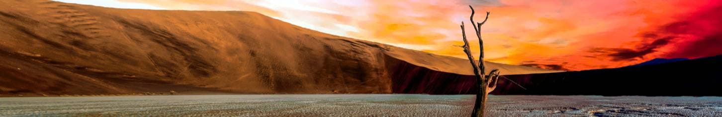 Vieraile Namibin autiomaan ja Damaralandin henkeäsalpaavissa aavikkomaisemissa. Ihaile auringon valon leikkiä Sossusvlein valtavien, punaisten hiekkadyynien yllä aamun ensimmäisten hehkuvan oranssien tuntien aikana. Koe meri Walvis Bayn ja Swakopmundin välillä, missä flamingot, pelikaanit ja hylkeet viihtyvät Benguelan merivirrassa samalla kun nautit maailman parhaista ostereista ja namibialaisesta lager-oluesta paikallisessa panimossa. Etoshan kansallispuistossa sinua odottaa safarimatka! Eläinlistan kärjessä ovat sarvikuono, hyeena ja Afrikan suurimmat norsut. Idempänä Caprivissa aavikko muuttuu jokien varsilla reheväksi ja vihreäksi.